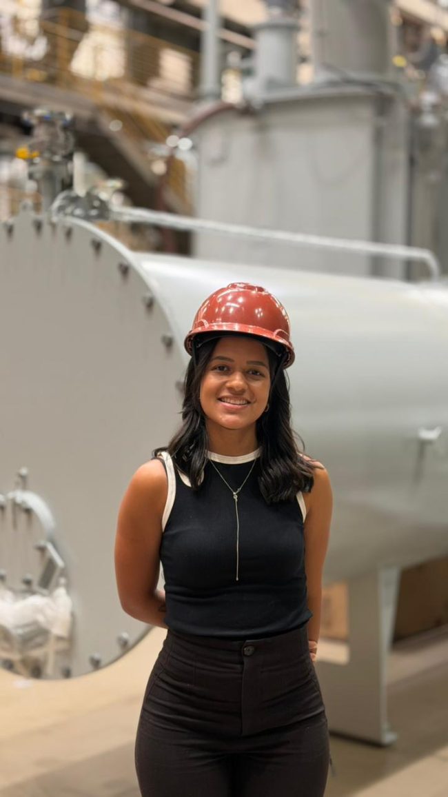 Aos 27 anos, Tássia Morais faz parte dessa faixa etária que ingressou no mercado com mais espaço para crescer. Formada em Engenharia Mecânica, com intercâmbio na Alemanha, ela entrou na TSEA, empresa referência mundial na produção de transformadores de potência e reguladores de tensão, com sede em Contagem (MG), como estagiária, em 2020, e atualmente é engenheira de projetos.